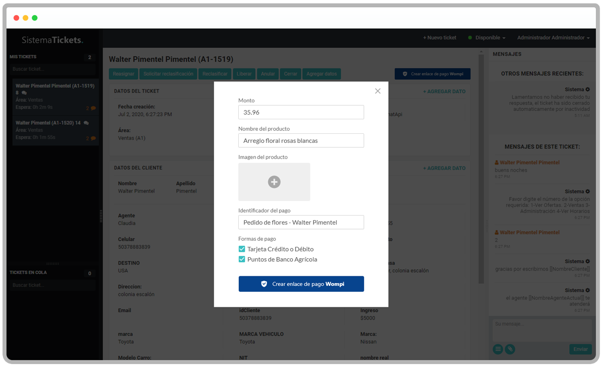 Recibe y administra tus pedidos de redes sociales con Bitdesk y envía tus Enlaces de pago de Wompi